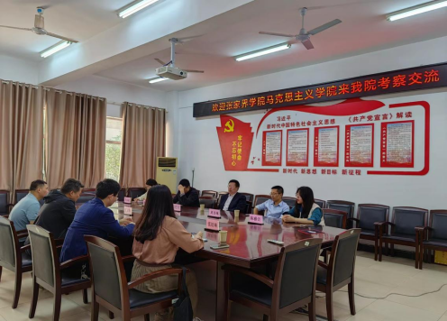 2023年5月12日上午,张家界学院马克思主义学院朱廷岚院长等一行五人来yl8cc永利官网,永利官网地址考察交流,学院相关院领导和教研室主任出席座谈会。