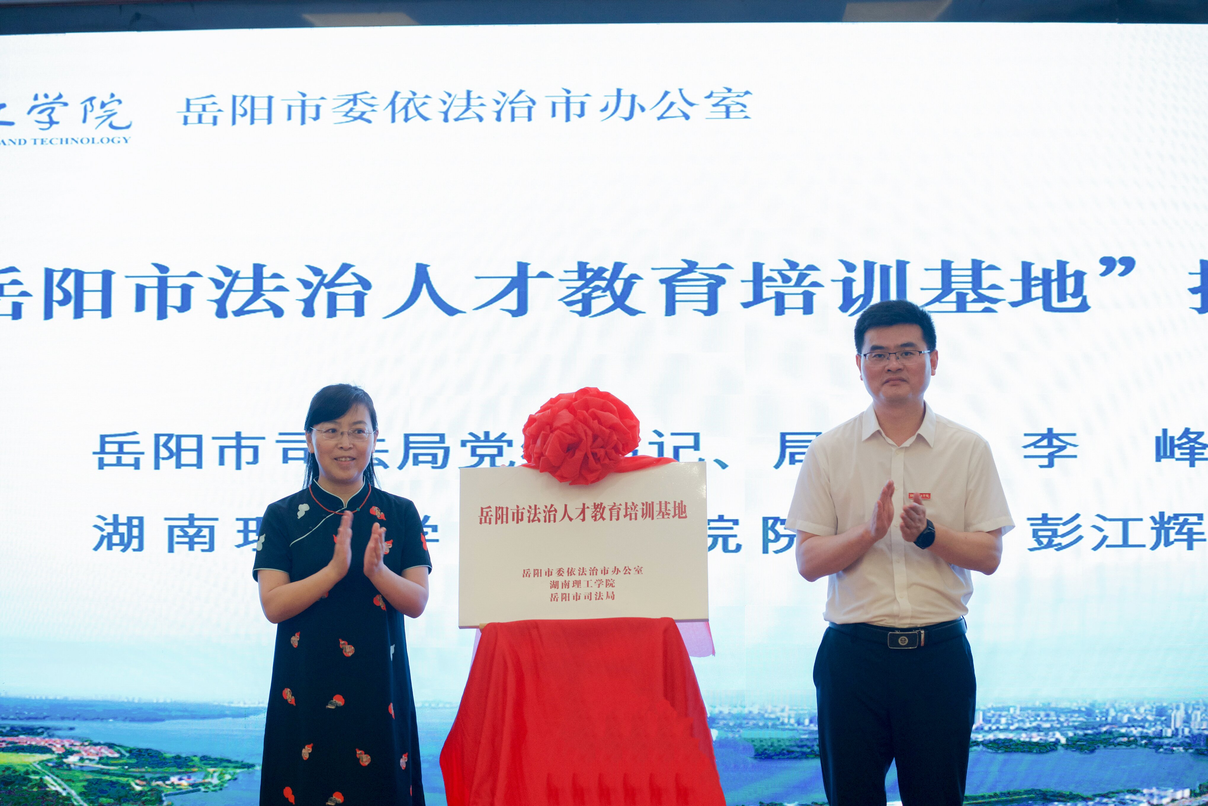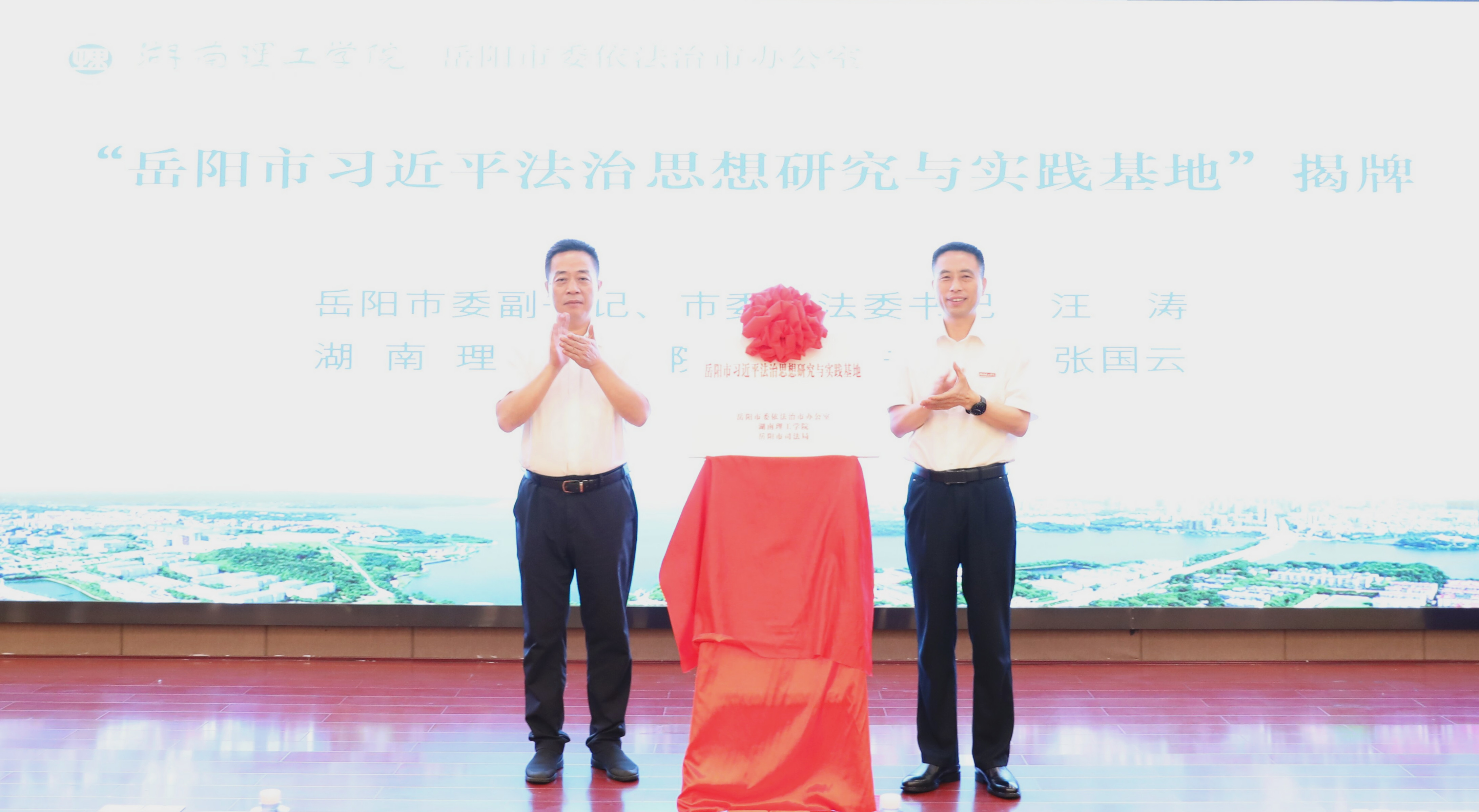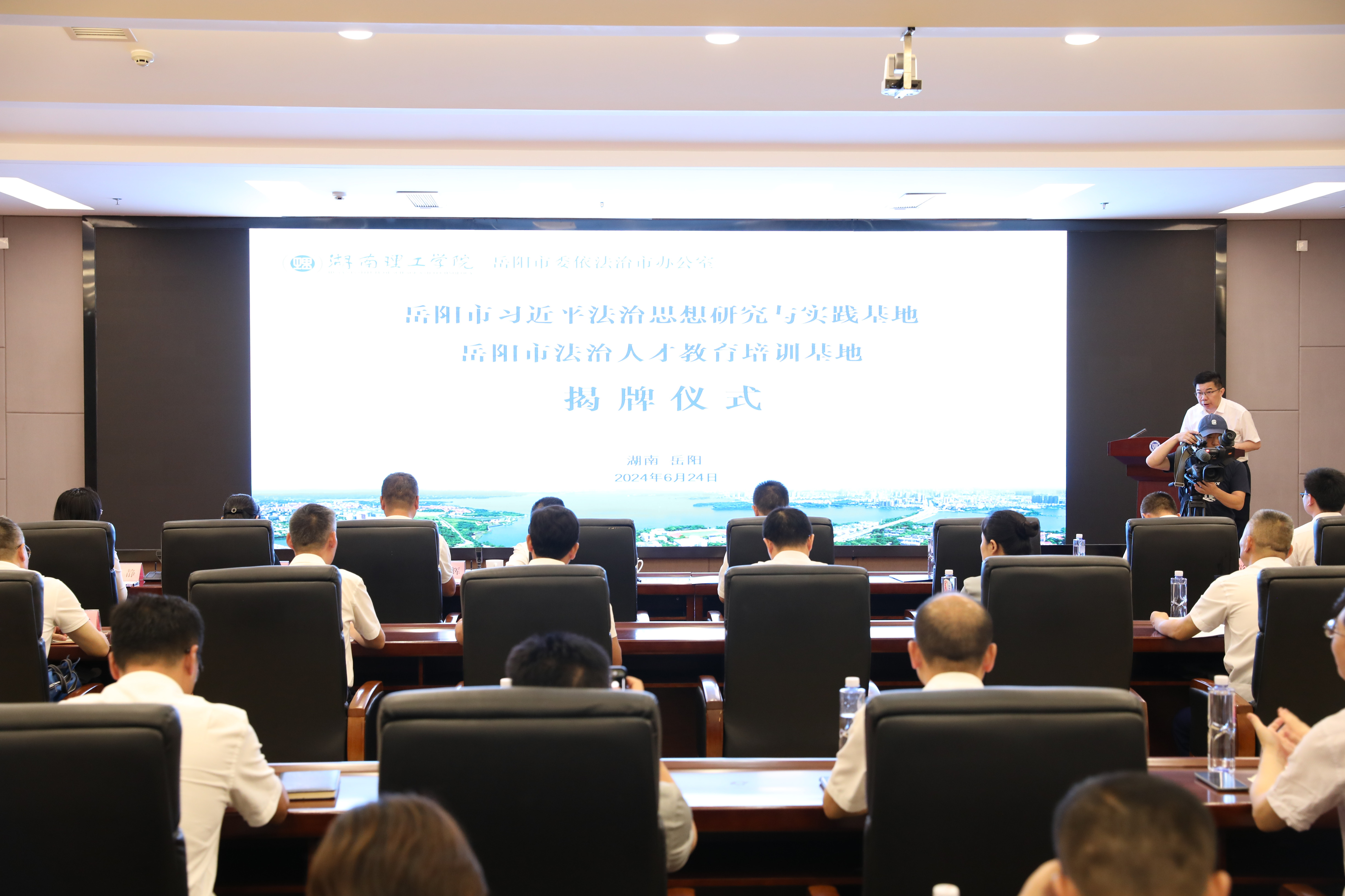 校园网讯 为全面贯彻落实党的二十大、二十届二中全会精神和习近平法治思想,深入推进全市政法系统“三高四新·法治护航”专项行动,6月24日上午,“岳阳市习近平法治思想研究与实践基地”“岳阳市法治人才教育培训基地”揭牌仪式暨“三高四新·法治护航”专项行动专题研讨会在我校举行。市委副书记、市委政法委书记汪涛,学校党委书记张国云出席活动,市委政法委、市委依法治市办、市中级法院、市检察院、市公安局、市司法局等市区县政法系统领导和相关企业负责人、学校科学研究院、yl8cc永利官网相关专家教授、律师代表参加会议。会议由党委委员、副校长徐振祥主持。