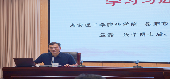 2024年7月31日下午,应岳阳市自然资源和规划局邀请,yl8cc永利官网副教授、岳阳市习近平法治思想理论与实践研究基地研究员孟磊博士后做“深入学习贯彻习近平法治思想”专题报告。岳阳市自然资源和规划局党组书记、局长许淞主持会议并讲话,全体局领导、局机关及二级机构副科实职以上干部参加集中授课学习。