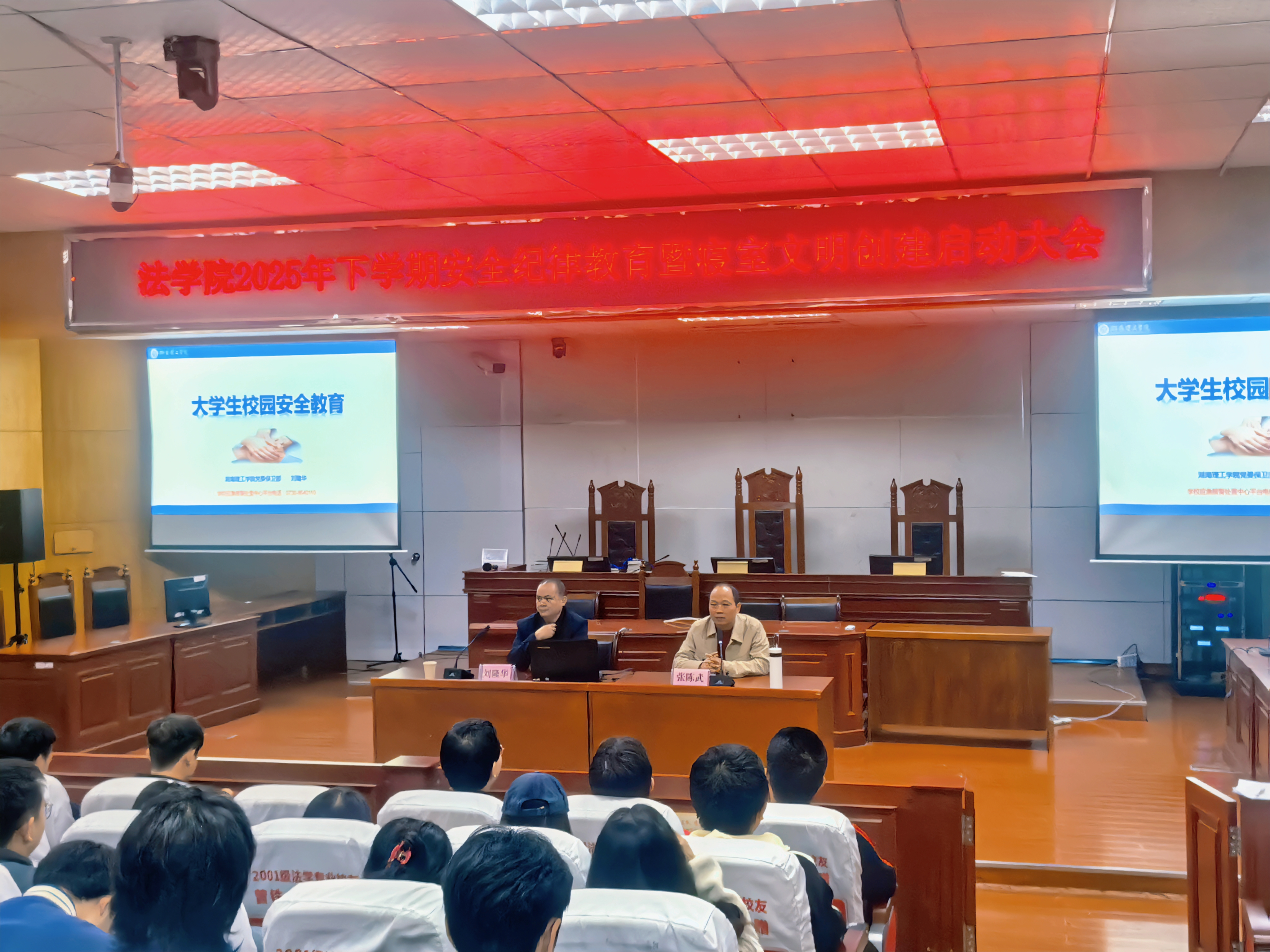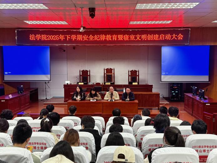 2025年11月9日,正值全国第34个消防安全宣传教育日。yl8cc永利官网2025年下学期安全纪律教育暨寝室文明创建启动大会于模拟法庭顺利召开。大会旨在进一步强化学生的安全意识与纪律观念,推动寝室文明建设常态化发展。学校保卫部长刘隆华受邀为yl8cc永利官网学生干部、寝室长宣讲安全预防知识。yl8cc永利官网党委副书记张陈武主持会议,、辅导员王旭智、何铁勇、周薇出席,各年级学生干部、寝室长参加。