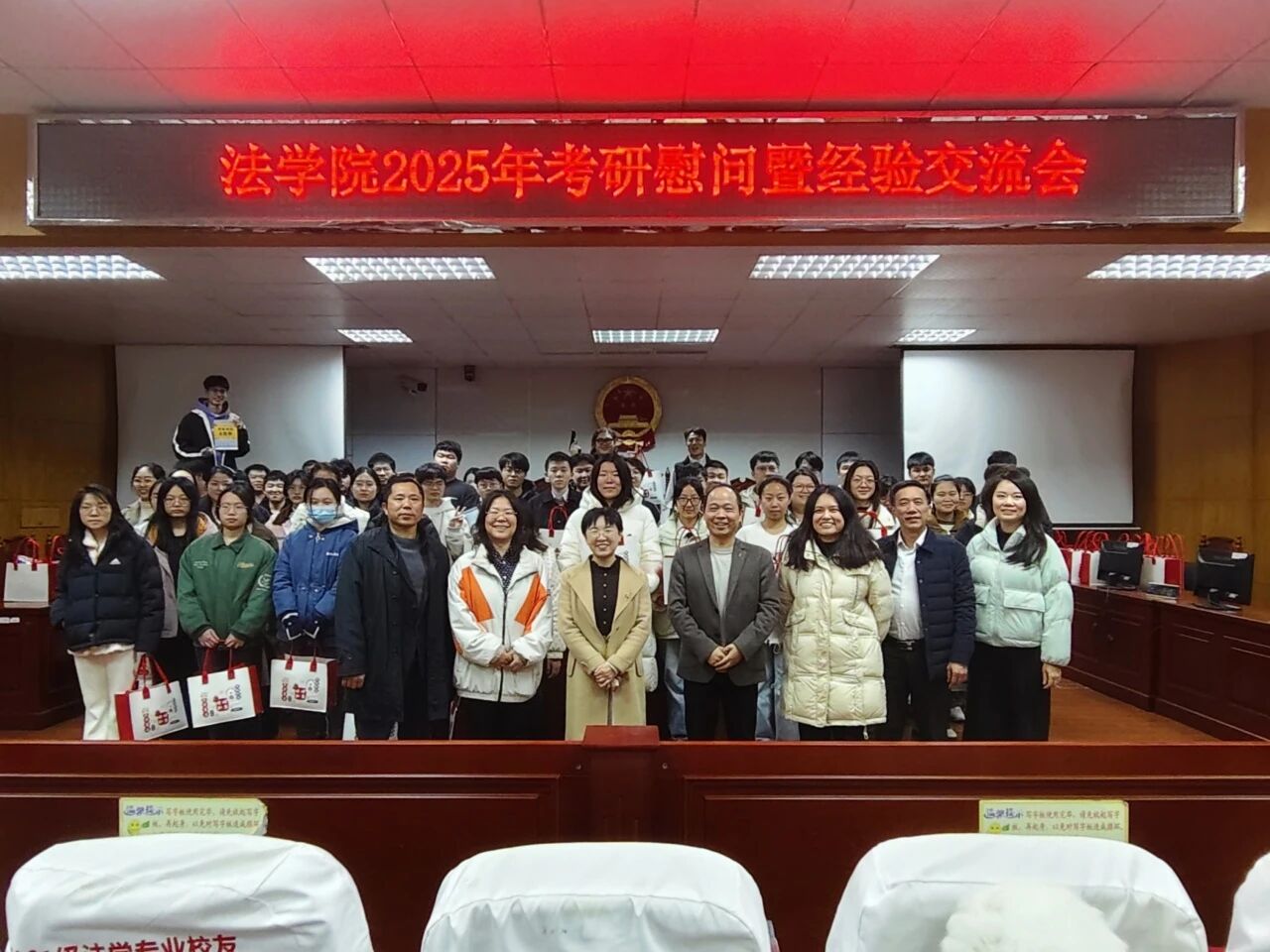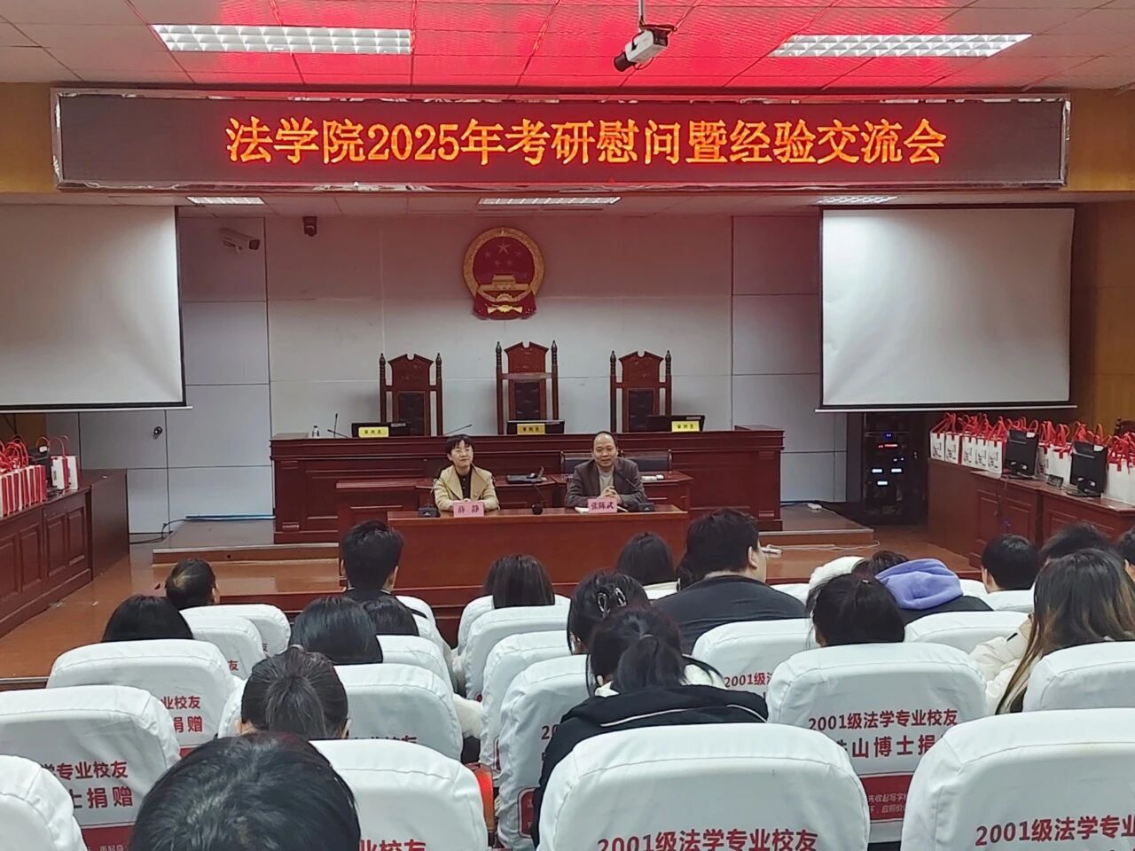 为切实为考研学子加油鼓劲,帮助大家缓解备考压力、坚定应考信心,以最佳状态迎战2026年硕士研究生招生考试,12月16日,yl8cc永利官网2025年考研慰问暨经验交流会于模拟法庭顺利召开。yl8cc永利官网党委书记薛静、党委副书记张陈武、22级班主任、辅导员及全体22级考研学生共同参会。