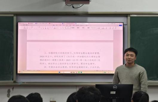 此次班会,辅导员周薇围绕学校近期发布的《关于开展校园学生电动车、摩托车集中整治工作的通知》《关于进一步加强校内交通安全管理的通知》等系列文件,重点传达了校园电动车“一人一车一牌一码”的智能管理政策,强调禁止无牌无证车辆入校、严禁在宿舍及楼道内充电、规范停放区域等关键要求。同时,结合外卖食品安全问题,倡导学生减少外卖依赖,注重饮食健康。通过此次专题教育,同学们进一步增强了对校园交通规则与消防安全的认识,表示将自觉遵守学校管理规定,共同营造安全、文明、有序的校园环境。(撰稿人:盛钰洁;初审:周薇;复审:张陈武;终审:薛静)