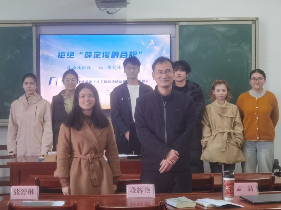 2025年11月25日下午,企业法务方向第二组读书会在学院8207举行。本次读书会的主题为《人工智能法律治理的路径拓展》,2025级法律硕士曾至昶、张宇航、苏格担任汇报人,孟磊副教授、张舒琳老师担任点评嘉宾。孟磊副教授充分肯定了同学们的汇报展示,并进一步分享了高屋建瓴的阅读方法论。张舒琳老师则从阅读的“广度”与“深度”出发,强调既要全面把握著作脉络,避免浅尝辄止,更要择其一点深入钻研,以求融会贯通。会后,由老师与学生组成的评议团评选得出本次读书会的优秀主讲人-张宇航同学。