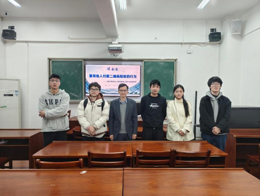 2025年11月24日晚,刑事法务方向第二组读书会在学院8207举行。本次读书会的主题为《冒用他人付款二维码取财行为的定性》,2025级法律硕士姚星、王露梁担任汇报人,夏尊文副教授、张咏涛副教授担任点评嘉宾。夏尊文副教授首先肯定了同学们的汇报成果,并精确指出了存在的不足以及应分别分析冒用付款二维码和收款二维码下的不同情形,对整体思考方向进行深度梳理。张咏涛副教授则从整体呈现效果出发,强调要学会理清问题脉络,充分研读参考文献后结合作答。经老师和同学们的共同评议,评选得出本次读书会的优秀主讲人- 王露梁同学。
