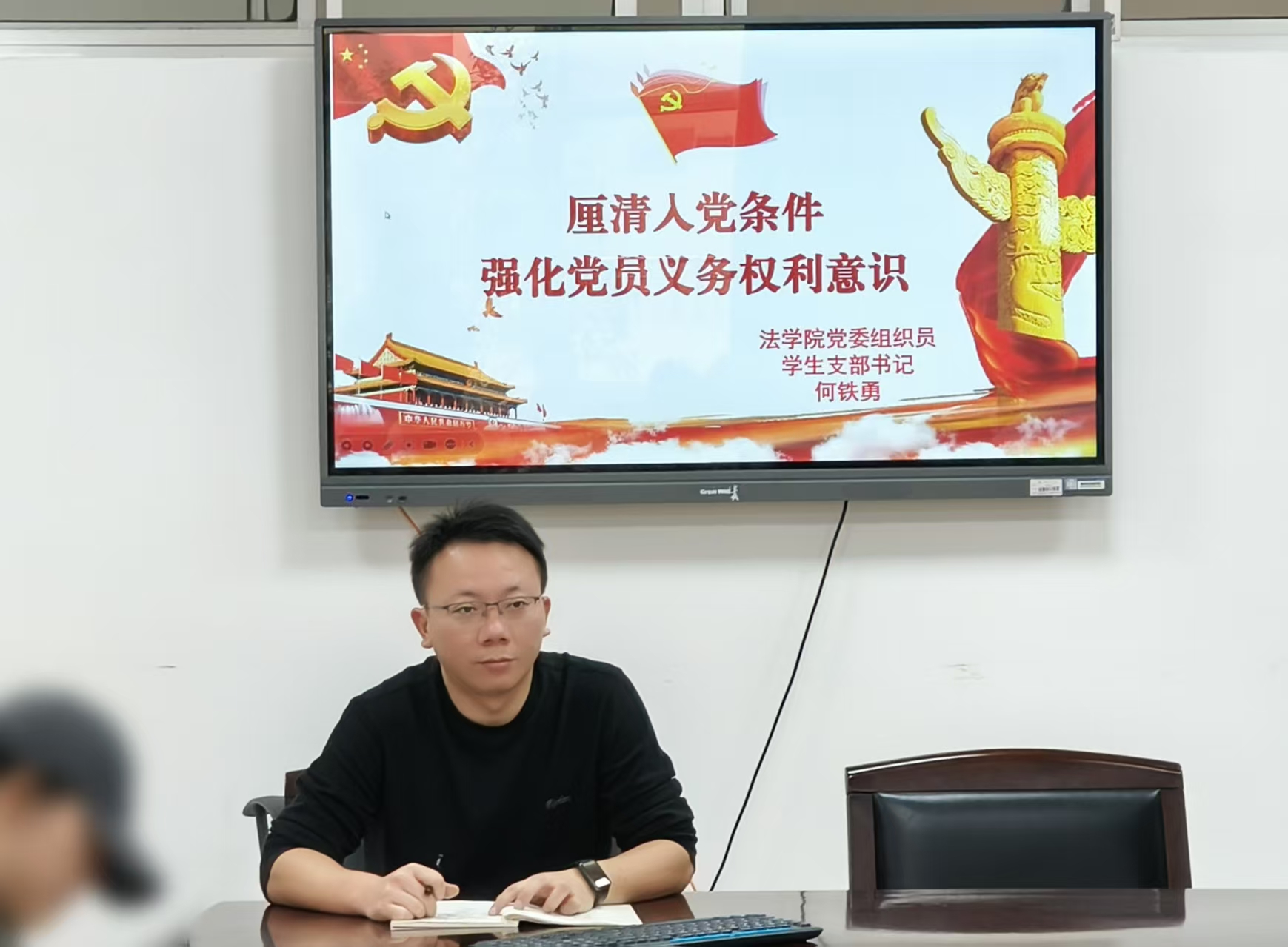 何铁勇以“厘清入党条件,强化党员义务权利意识”为主题,详细阐述“入党的条件”“发展党员工作流程”“践行党员先锋模范作用”三个方面。他强调,作为入党积极分子,应主动学习新知识新技能,持续提升个人综合素养,践行好先锋模范作用,积极为班级和社会奉献力量,为入党筑牢坚实基础。